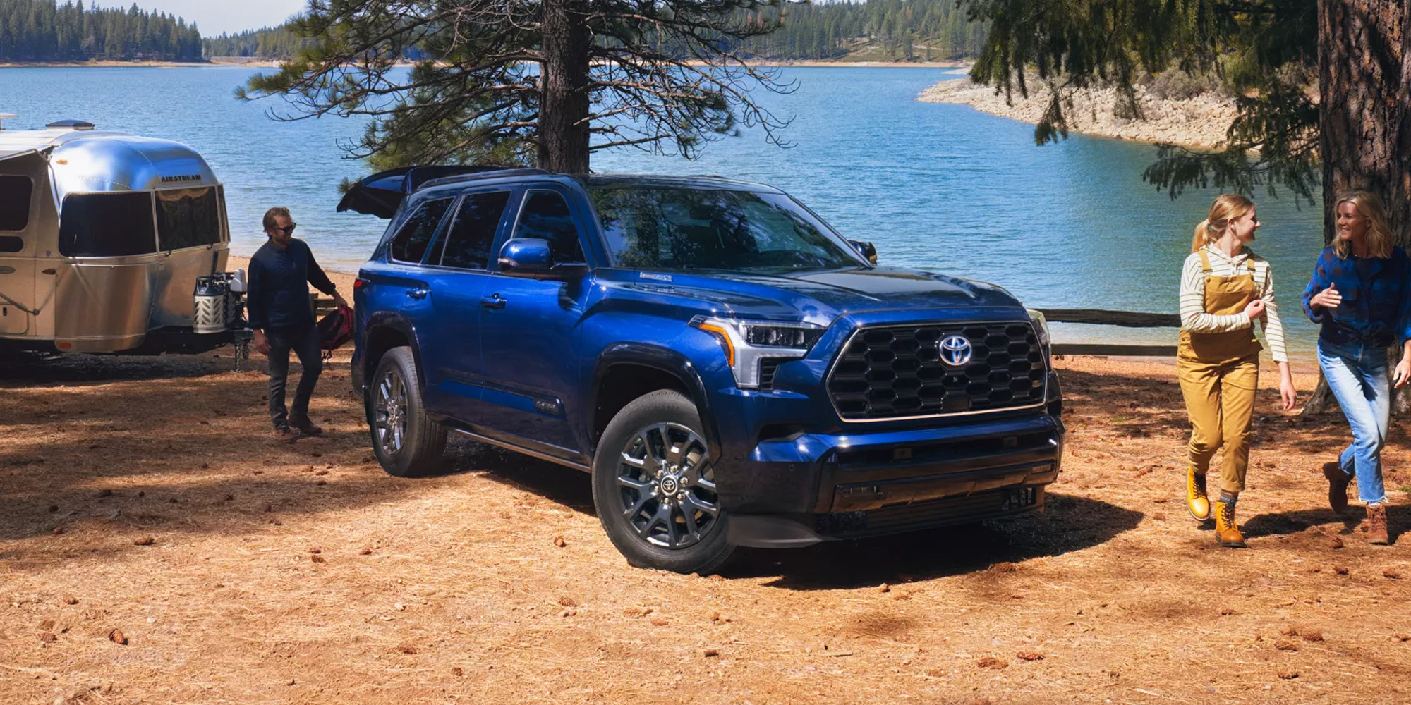 Toyota Sequoia: If you have a large family that loves adventure, the Toyota Sequoia is the right choice for your household. This is the best Toyota SUV for families of seven, offering plenty of legroom and entertainment features to get everyone excited for the ride around town. Standard with a powerful i-FORCE MAX Twin-Turbo V6 Hybrid engine, outdoor families will love this SUV's hauling capabilities to handle up to 9,520 lbs. of towing capacity for towing the camping trailer or off-road vehicles. Featuring leather seats, available first- and second-row seating, and a panoramic moonroof, the Toyota Sequoia is the best Toyota SUV for large families who love to drive in comfort and style with plenty of comfortable space for everyone. Connect your music apps to the available 14-speaker JBL Premium Audio sound system, enhanced by a powerful subwoofer and amplifier for a totally immersive surround sound experience. Easily connect to your devices via Apple CarPlay® and Android Auto™ through the 14-inch Toyota Audio Multimedia Touchscreen, and turn up the volume.
